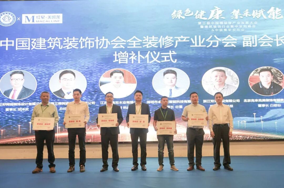 本次峰会现场举行了中装协全装修产业分会增补副会长授牌仪式,中国建筑装饰协会副秘书长艾鹤鸣宣读了文件。
