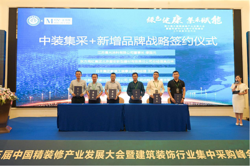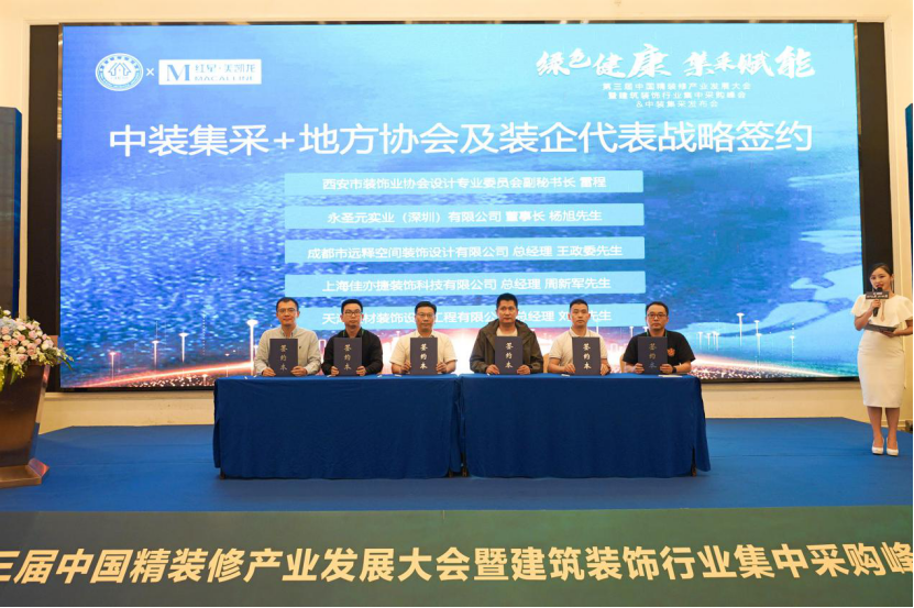 在本次峰会中,中装集采平台分别与亚厦、中天精装、雅居乐雅城集团、远洋装饰等十余家企业代表、西安市装饰业协会设计专业委员会、晨光涂料、壁安新材、日丰集团、科勒卫浴、摩恩卫浴、久盛地板、世友地板、诺贝尔瓷砖、蒙娜丽莎瓷砖、美的电气、志邦家居、西顿灯具、老板电器、千年舟新材、北新建材、嘉宝莉涂料等四十余家企业举办了战略签约仪式,真正实现了中装集采平台与建筑装饰企业、行业协会、建材企业信息沟通、资源整合与对接。相信未来,中装集采平台将不断优化和创新服务形态,与更多优质企业达成合作,有力推动产业融合与发展。